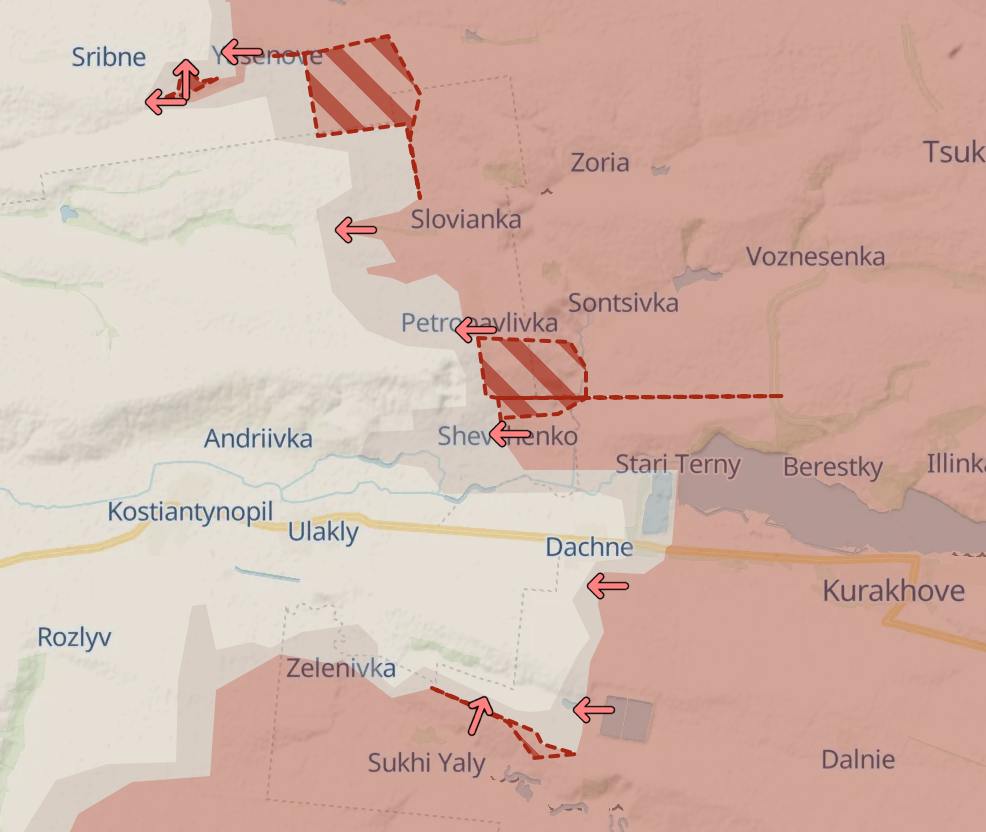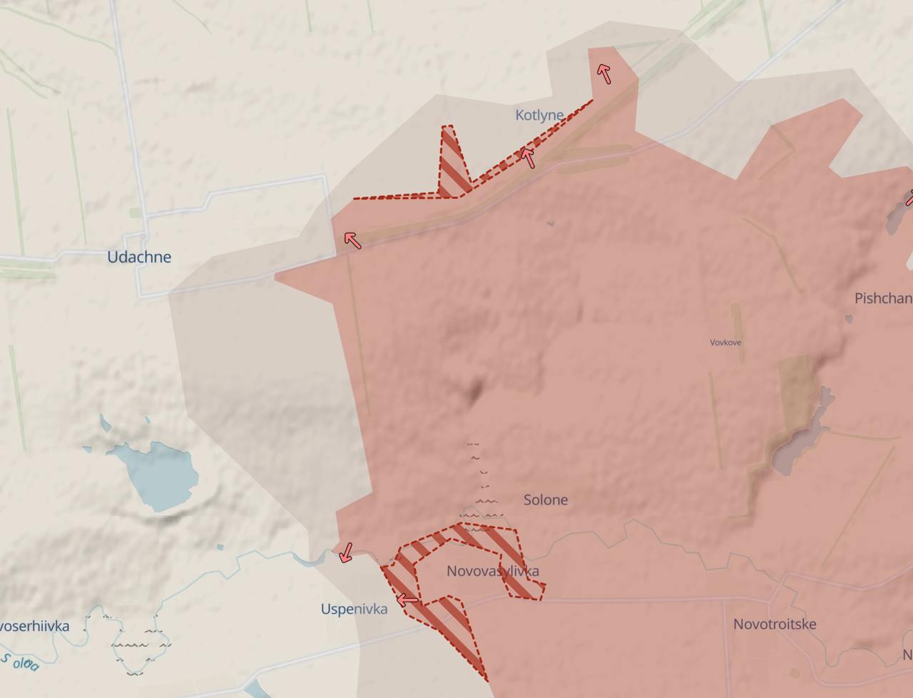Войска РФ перерезали железную дорогу между Удачным и Котлиным и наступают в сторону Сергеевки, откуда до границы Днепропетровской области - около 3 км. До населенного пункта уже долетают ФПВ-дроны.