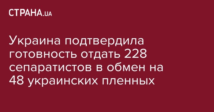 Украина подтвердила готовность отдать 228 сепаратистов в обмен на 48 украинских пленных