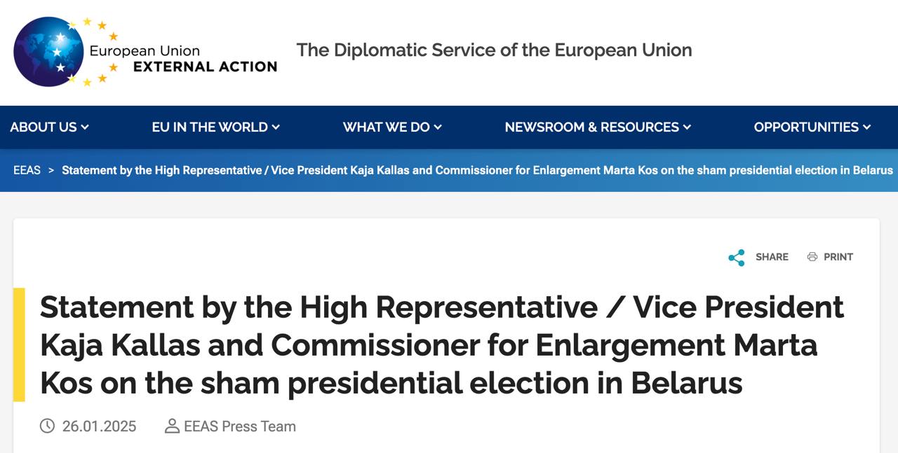Глава европейской дипломатии Кая Каллас и еврокомиссар по вопросам расширения Марта Кос опубликовали свое заявление касательно выборов в Беларуси.
