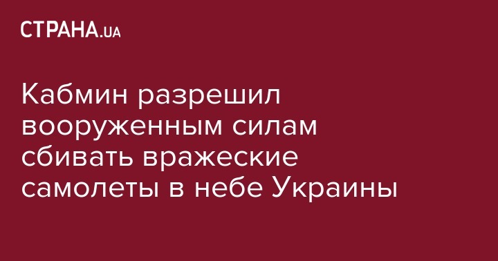 Кабинет министров принял постановление №1012, которым разрешил Вооруженным силам сбивать вражеские самолеты в украинском воздушном пространстве. Соответствующее распоряжение размещено на сайте Кабмина.