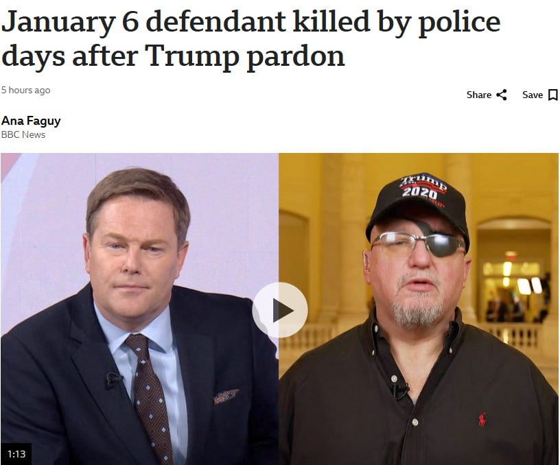 Помилованный президентом США Дональдом Трампом участник штурма Капитолия был убит через несколько дней после освобождения.