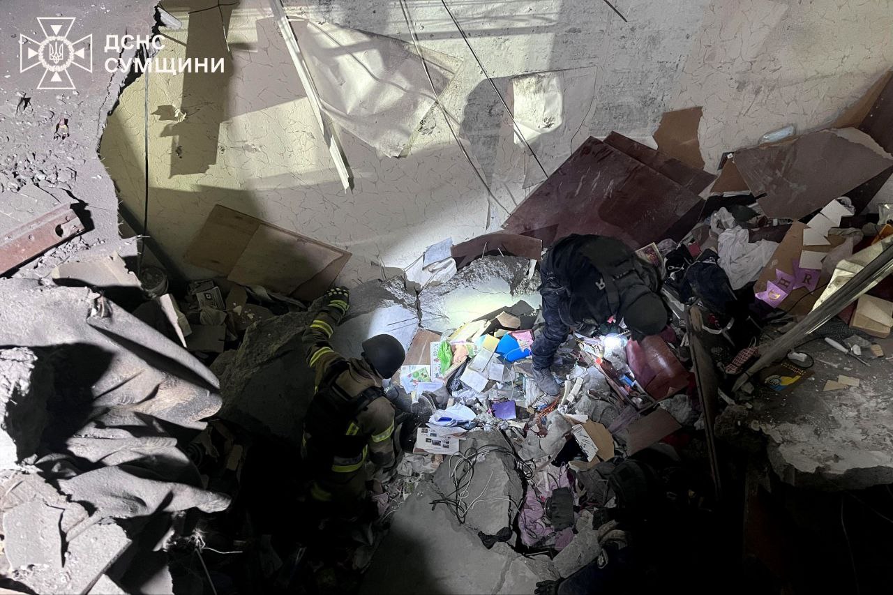 Сегодня ночью в результате ночной атаки РФ "Шахед" попал в жилую многоэтажку в городе Сумы. Четыре человека погибли и 9 получили травмы разной степени тяжести, из них – один ребенок.
