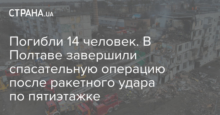 В Полтаве завершены спасательные работы на руинах многоквартирного жилого дома, разрушенного в ходе очередной массированной атаки РФ по территории Украины.