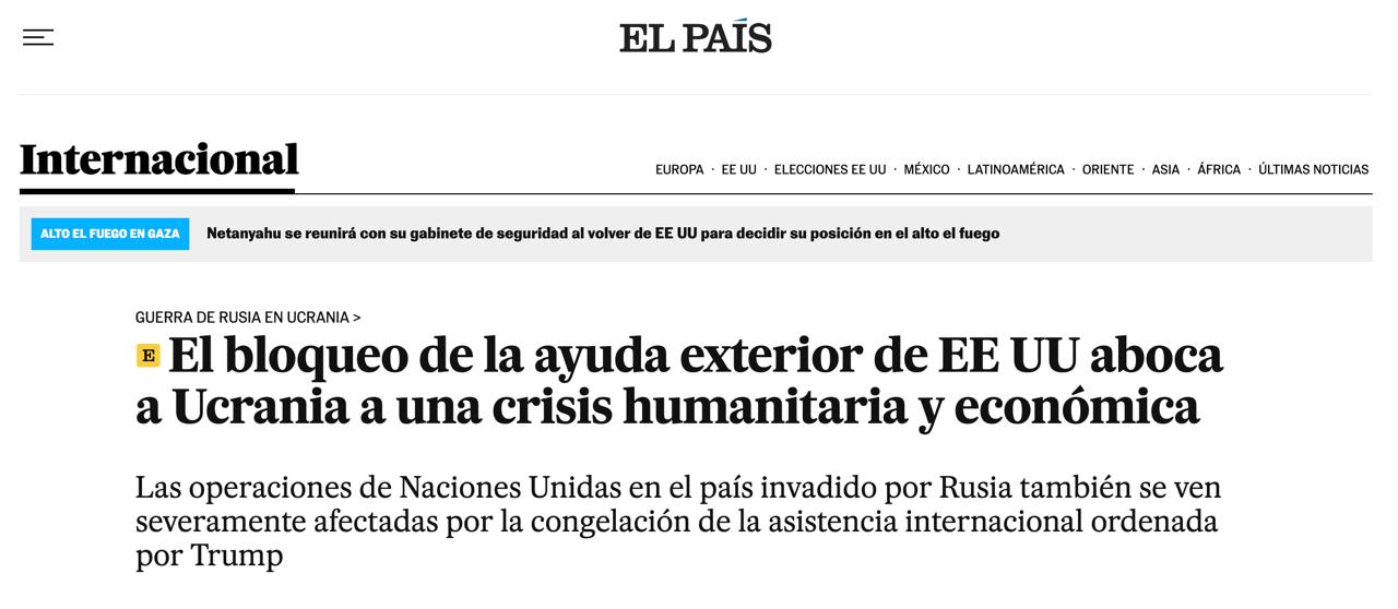 Кроме того, по данным источников издания El Pais, закрытие USAID повлияло и на многочисленные проекты ООН в Украине. Оказалось, что многие из них по большей части финансировались через это агентство Госдепа, например, связанные с защитой прав человека.