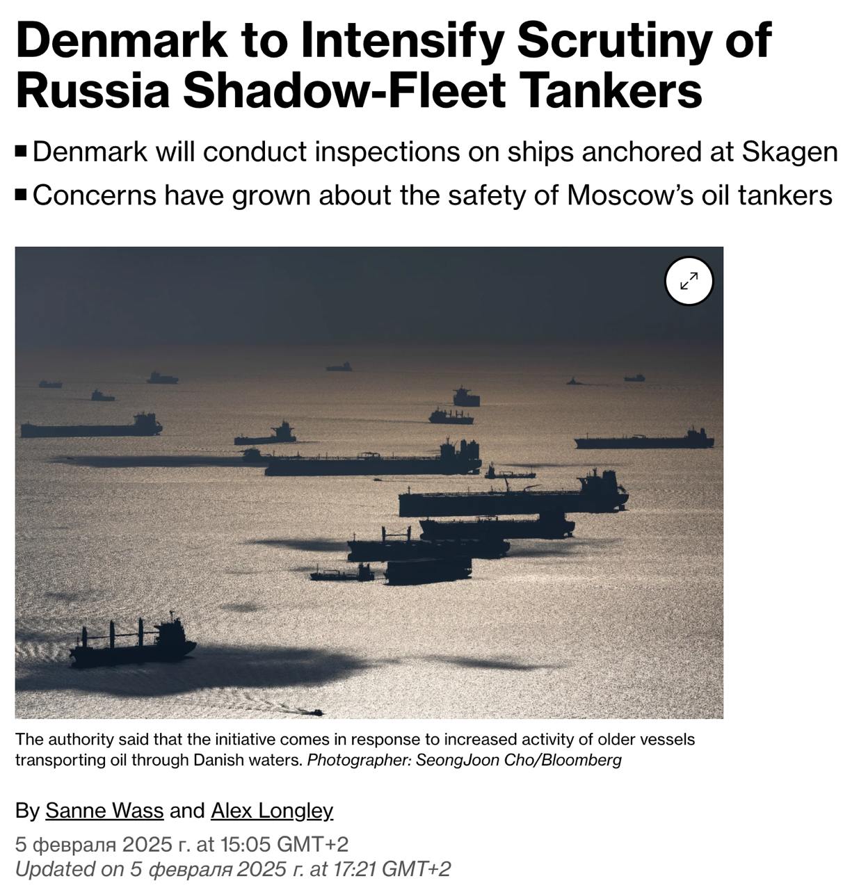 Датское морское управление начнет проверять суда, которые "не могут считаться мирными", в целях защиты окружающей среды и безопасности мореплавания от старых судов из теневого флота Москвы.