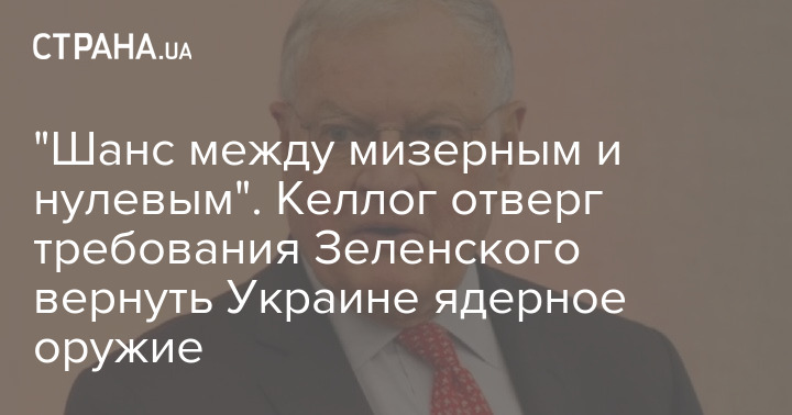Спецпредставитель президента США Дональда Трампа Кит Келлог отверг требования президента Владимира Зеленского вернуть Украине ядерное оружие.