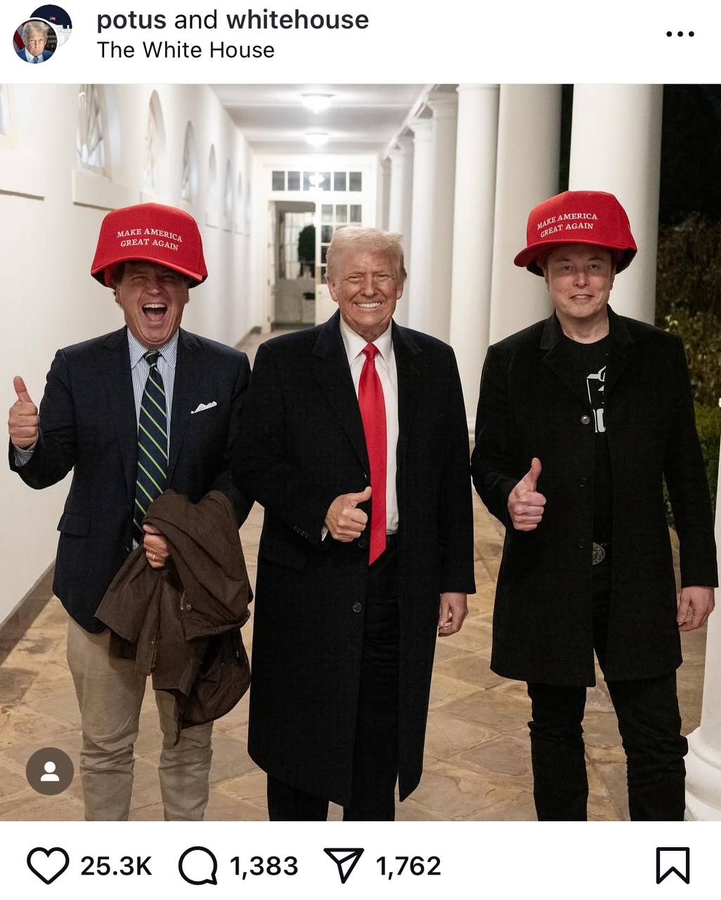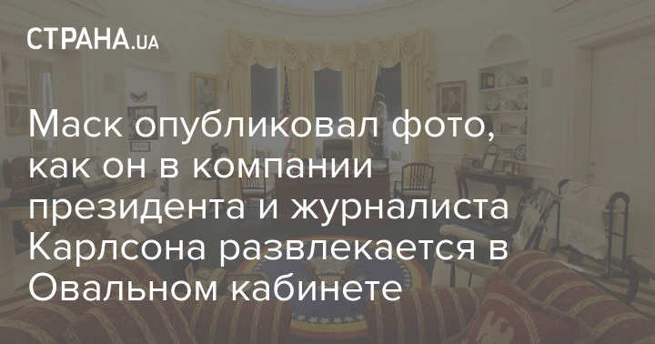 Маск опубликовал фото, как он в компании президента и журналиста Карлсона развлекается в Овальном кабинете