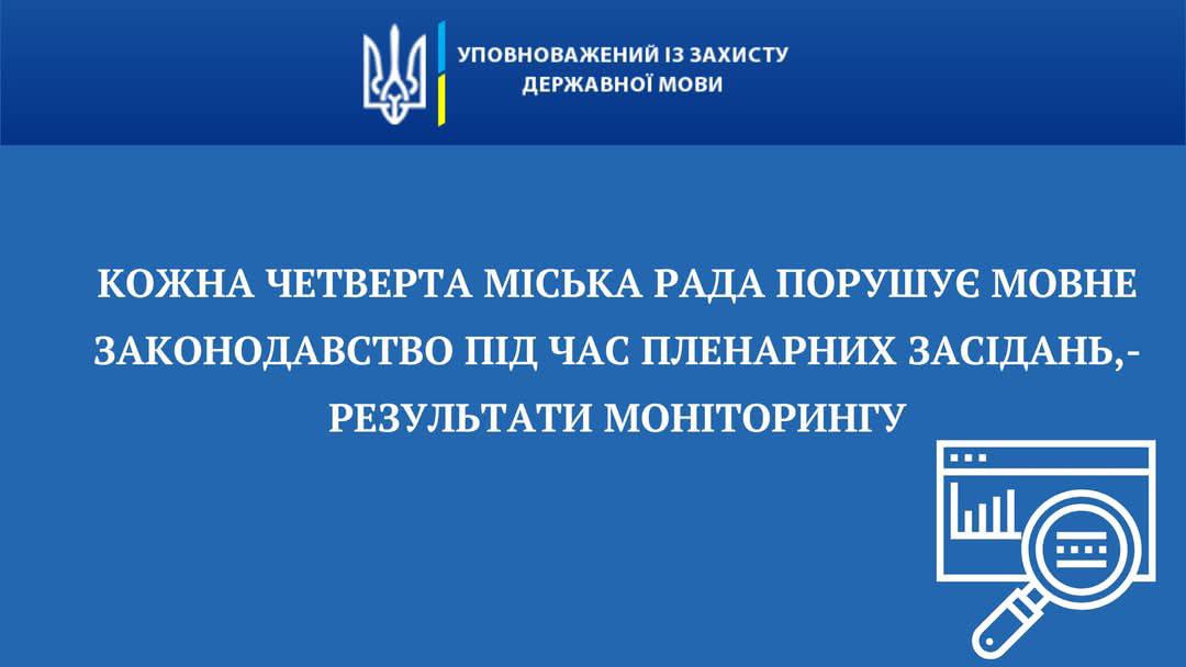 Секретариат уполномоченного по правам государственного языка прослушал записи пленарных заседаний 50 местных советов в десяти областях Украины и зафиксировал русский язык в 24% из них.