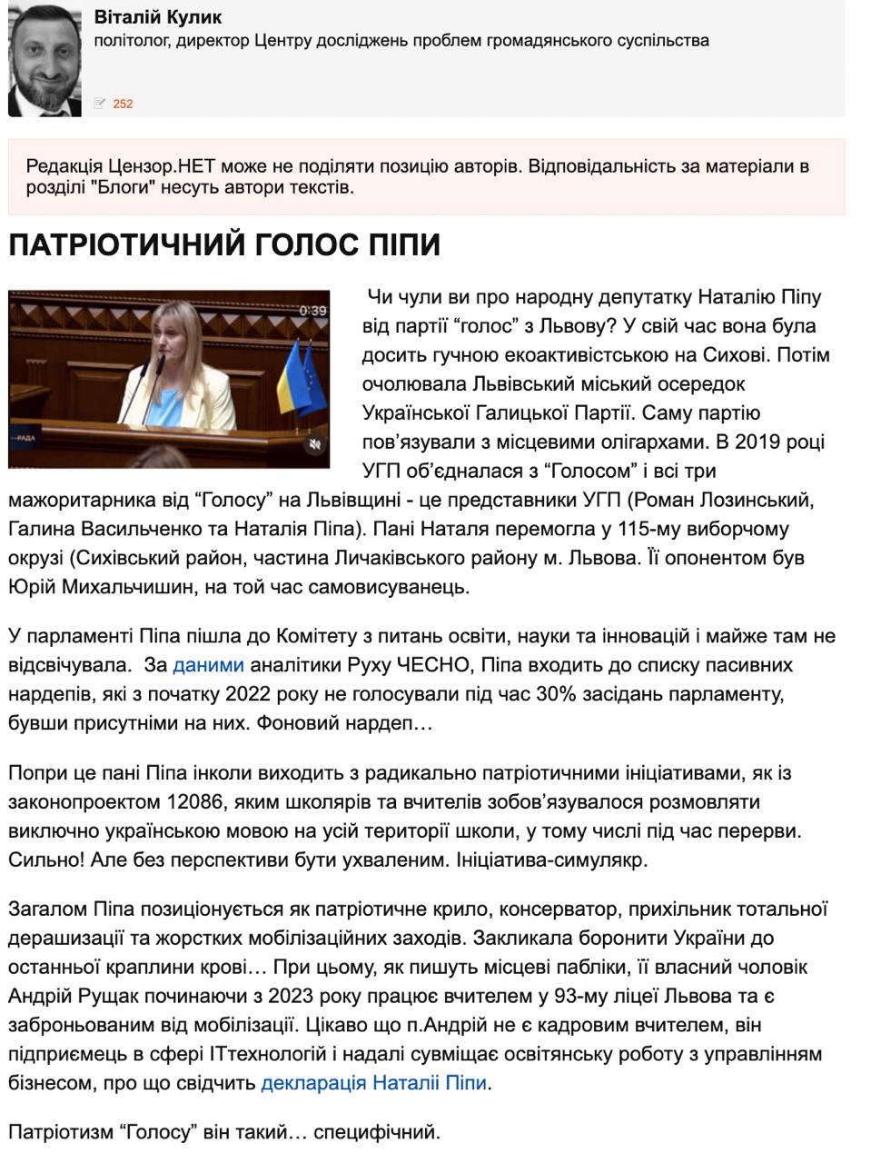 Супруг народного депутата Натальи Пипы Андрей Рущак с 2023 года имеет бронь от мобилизации, потому что работает учителем в 93-м лицее Львова. При этом на само деле кадровым учителем он не является.
