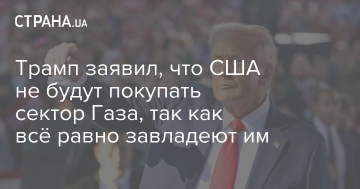 Трамп заявил, что США не будут покупать сектор Газа, так как всё равно завладеют им
