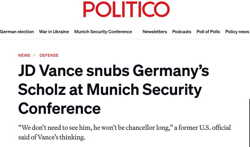 Недавно Вэнс и Шольц провели встречу во время саммита по искусственному интеллекту в Париже, но с тех пор существенно изменилась геополитическая ситуация, и учитывая, что Шольц является лидером принимающей конференцию страны, отсутствие переговоров на этот раз впечатляет, заявило издание.