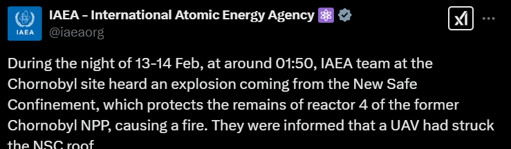 Дрон атаковал саркофаг над разрушенным энергоблоком ЧАЭС накануне Мюнхенской конференции