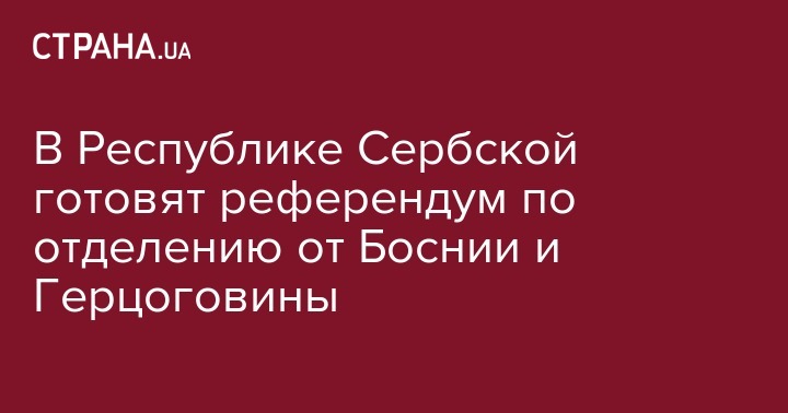 Лидер Республики Сербской Милорад Додик заявил о намерении провести в следующем году референдум по отделению республики от Боснии и Герцеговины, передает Blic.
