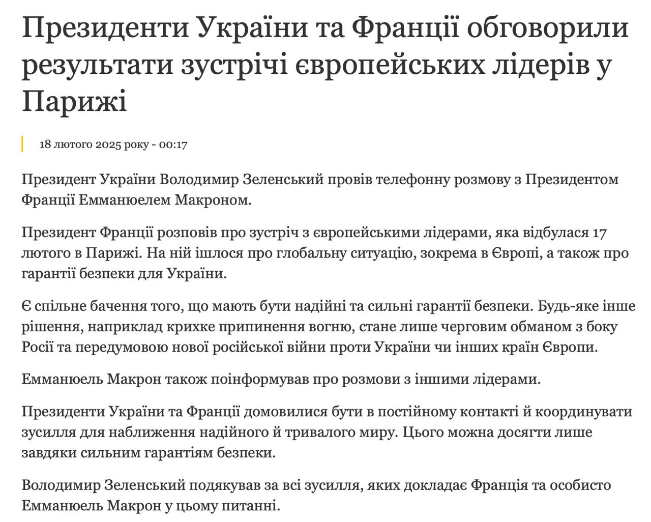 Лишь в очередной раз президент Франции заявил о необходимости "прочных и надежных гарантий безопасности" для Украины.