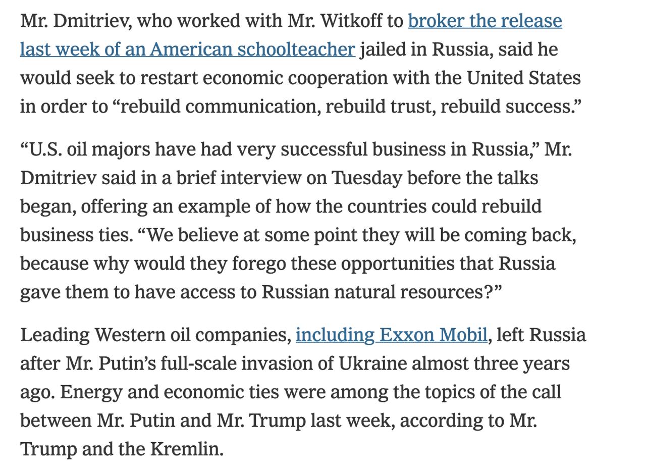 Об этом Дмитриев сообщил американской газете The New York Times.