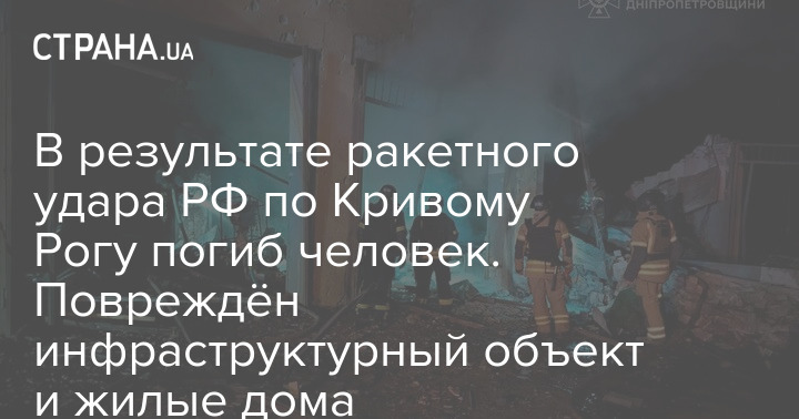 В результате ракетного удара РФ по Кривому Рогу погиб человек. Повреждён инфраструктурный объект и жилые дома