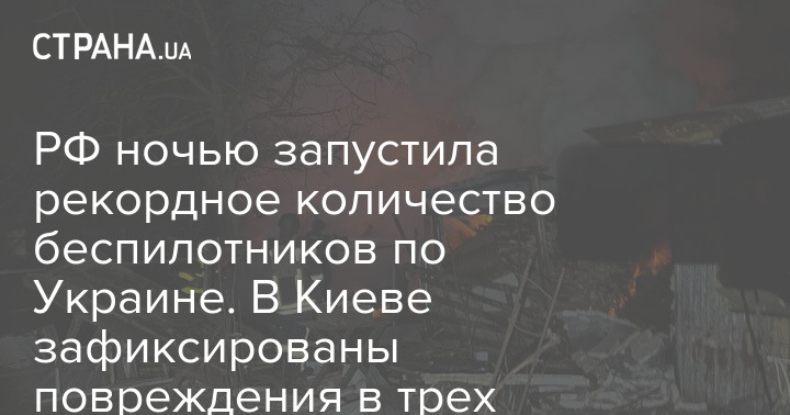 РФ ночью запустила рекордное количество беспилотников по Украине. В Киеве зафиксированы повреждения в трех районах