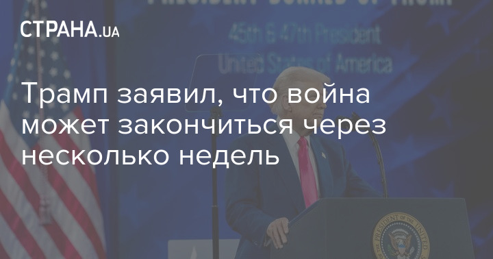Президент США Дональд Трамп на брифинге заявил, что война в Украине может закончиться "через несколько недель", а переговоры с Россией идут "очень хорошо".