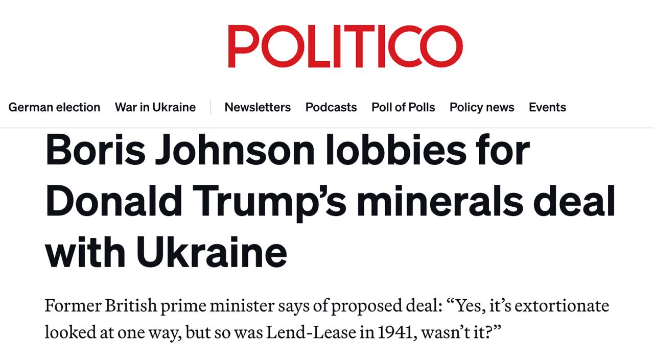 Вчера мы приводили комментарий Джонсона соглашения между Украиной и США о месторождениях, в котором он назвал предложенный Вашингтоном вариант договора аферой.