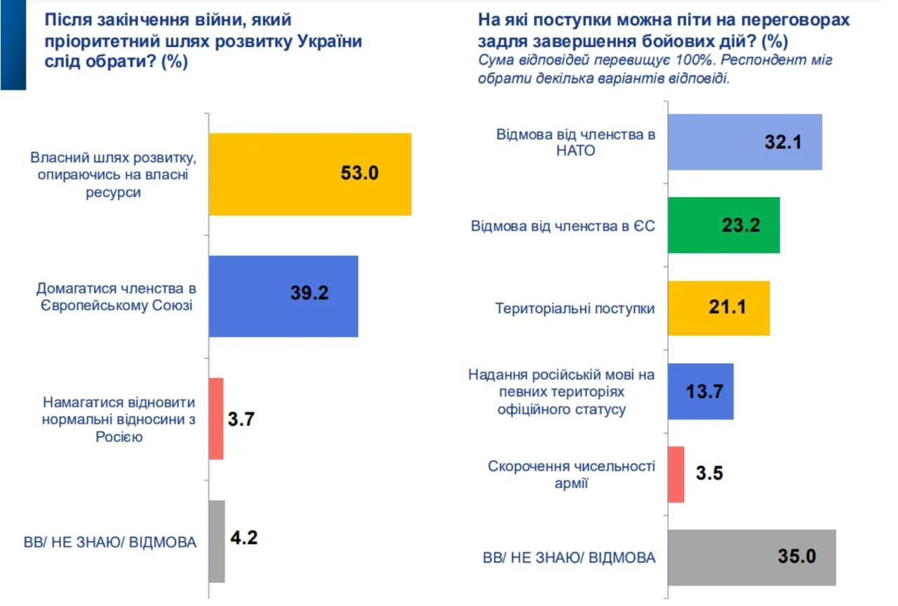 Ради прекращения огня 32% украинцев готовы отказаться от НАТО, 23% – от членства в Евросоюзе.