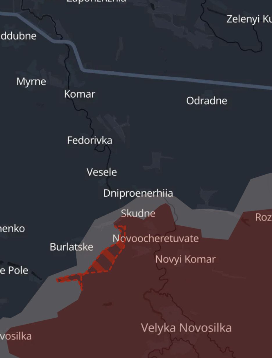 В Донецкой области российские войска за минувшие сутки продвинулись со стороны Великой Новосёлки (район Бурлацкого) и в Андреевке к западу от Курахово.