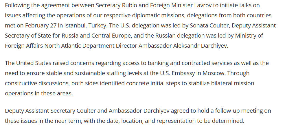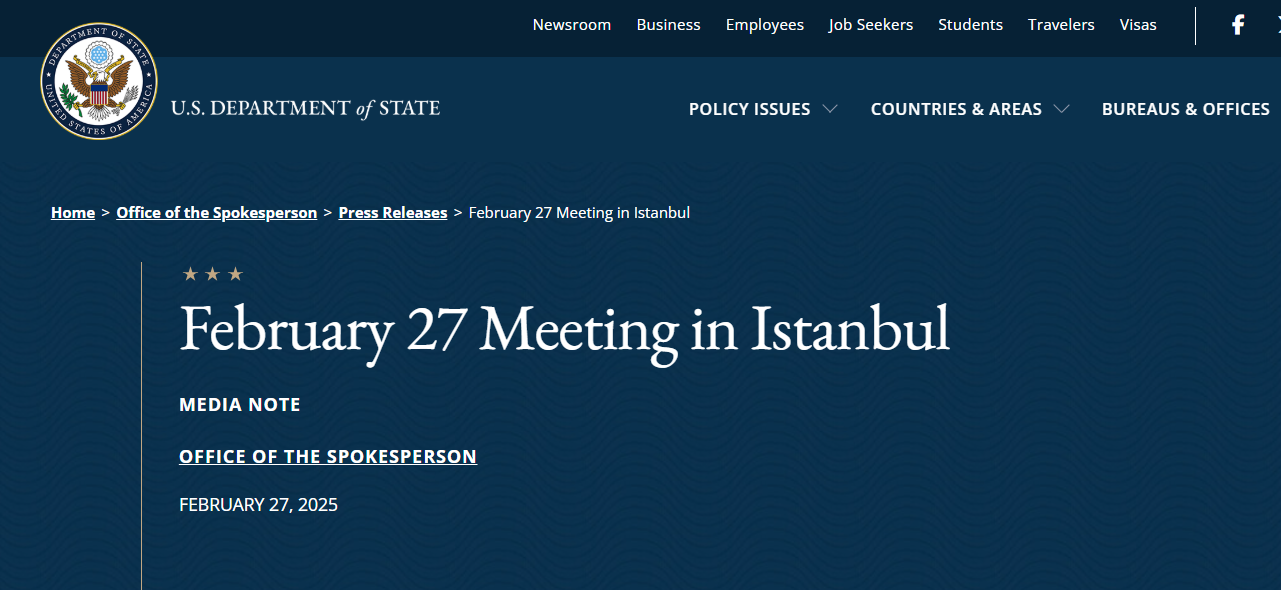В Госдепе рассказали подробности вчерашних переговоров с Россией в Стамбуле