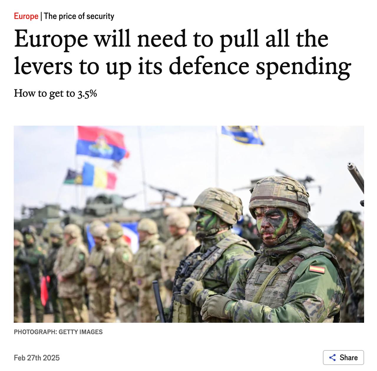 Чтобы заменить поддержку Штатов, если она будет прекращена, ЕС необходимо будет увеличить свой вклад примерно вдвое - то есть до 0,4% ВВП.