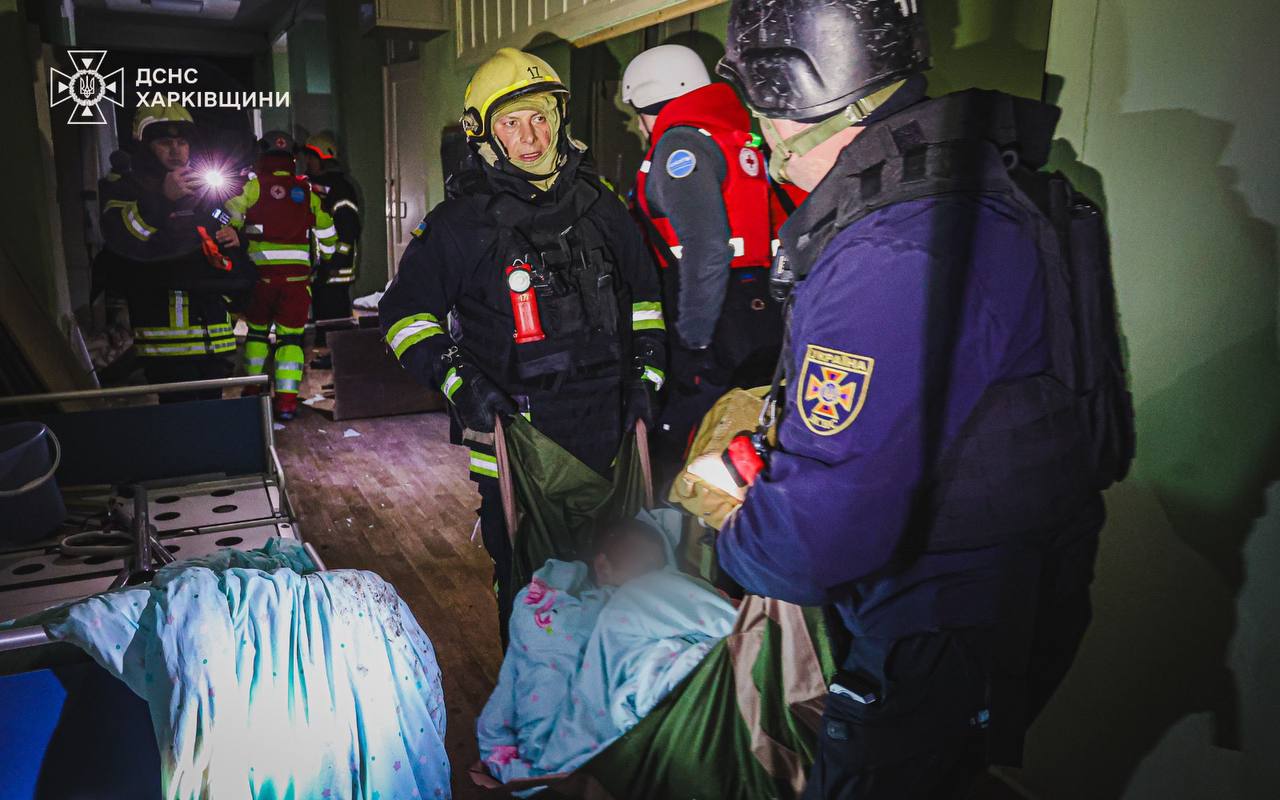 Сегодня ночью российские войска нанесли массированные удары по Киевскому, Шевченковскому и Новобаварскому районам Харькова, а также по Харьковскому району области. Пострадали 12 человек, среди которых 2 детей.
