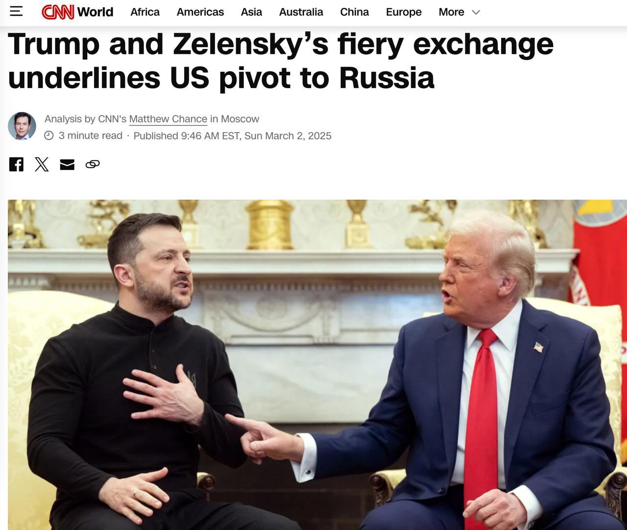 "Независимо от того, было ли это спланировано или нет, Москва, с ликованием отреагировавшая на перепалку в Белом доме, теперь ожидает, что переговоры, направленные на восстановление отношений между США и Россией, продолжатся и даже ускорятся в ближайшие недели", - пишет CNN.