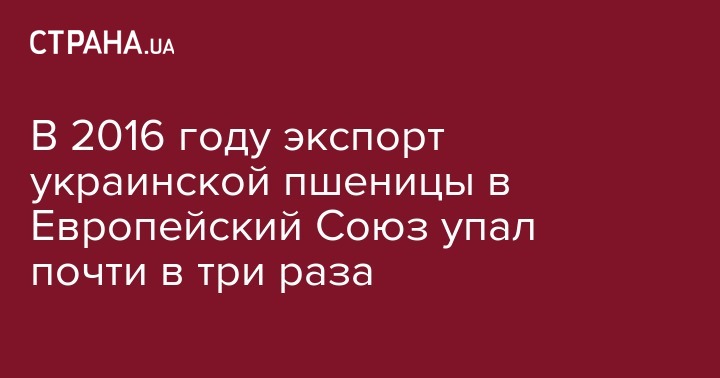 В 2016 году экспорт украинской пшеницы в Европейский Союз упал почти в три раза