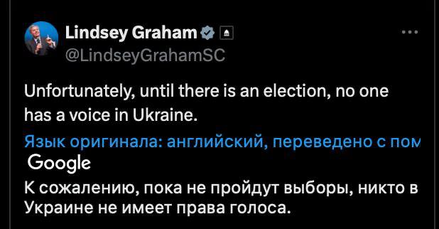 "К сожалению, пока не пройдут выборы, никто в Украине не имеет права голоса", - написал он в Х.