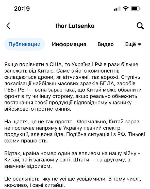 "Именно из его компонентов состоят дроны как отечественные, так и вражеские. Степень локализации наиболее массовых образцов БПЛА, средств РЭБ и РЭР – она сейчас такова, что Китай может обрушить фронт в ту или иную сторону, если реально ограничит поставки своей продукции соответствующему участнику военного противостояния. К счастью, это не так просто. Формально Китай сейчас не поставляет напрямую в Украину определенный спектр продукции, но она идет. Похожая ситуация и с РФ. Теневые схемы работают", – добавил Луценко.