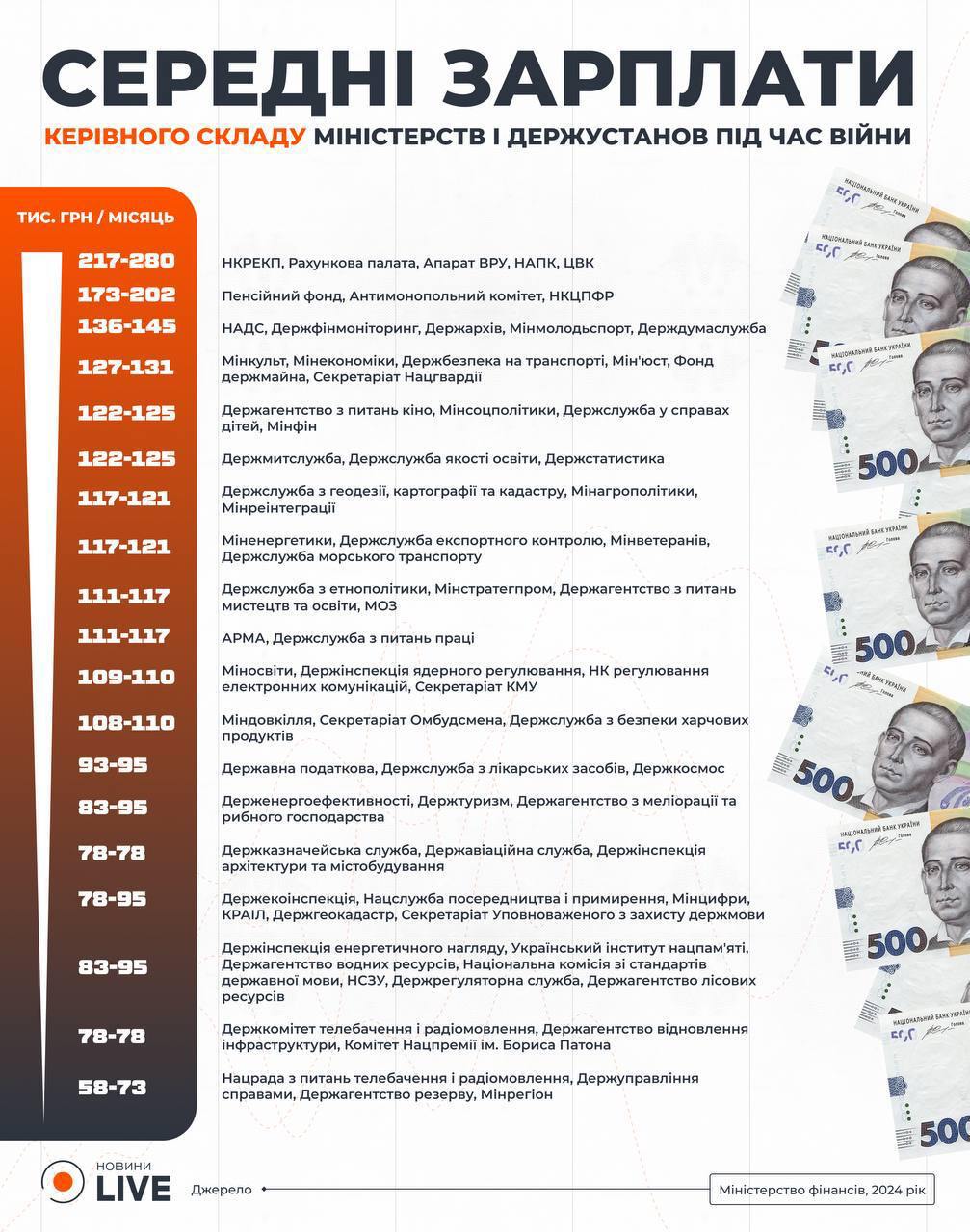 Зарплаты руководства министерств и ведомств по итогам года увеличилась на 24,5% и составили в среднем 117,6 тысячи гривен.
