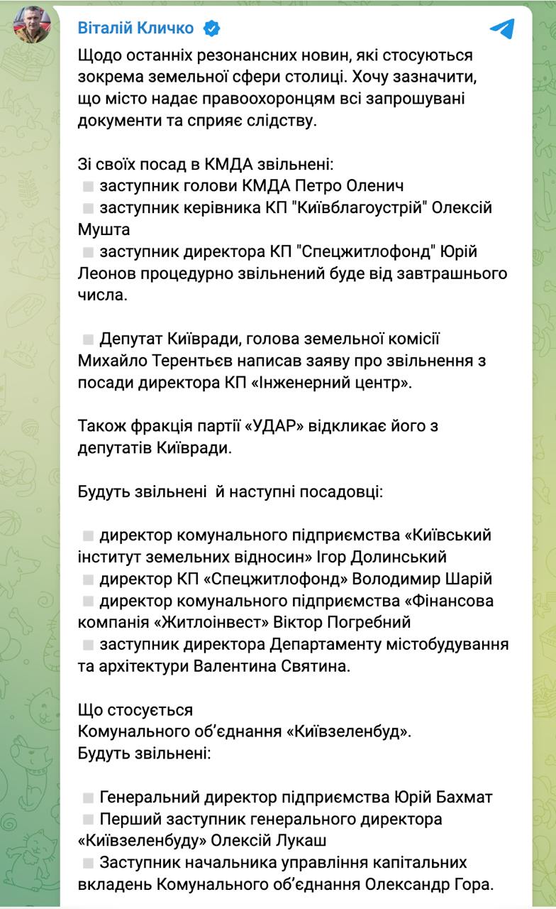 Кличко сообщил об увольнениях. Фото: Телеграм
