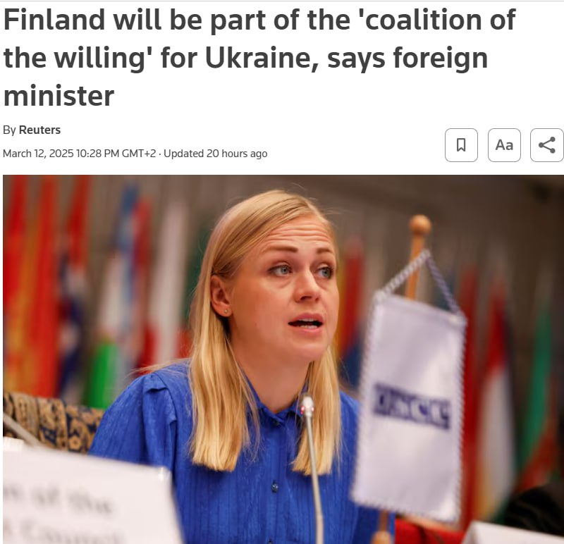 Власти Финляндии не собираются отправлять войска в Украину, так как страна граничит с Россией