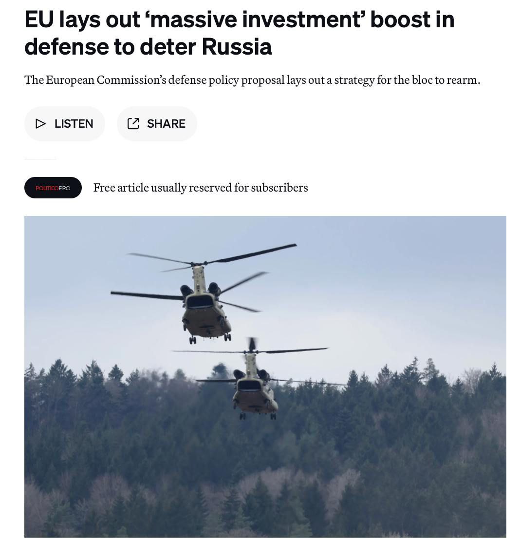 Напомним, глава Еврокомиссии Урсула фон дер Ляйен представила план вооружения Евросоюза на 800 миллиардов евро.