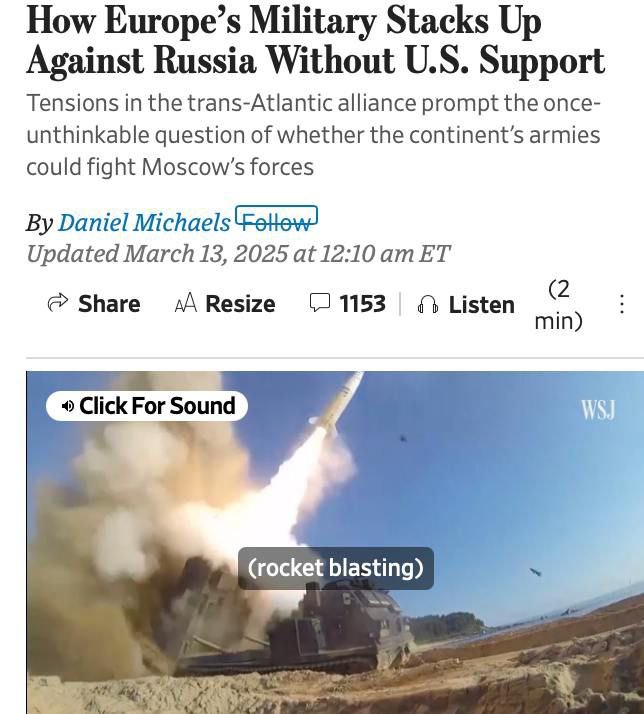 При этом Wall Street Journal указывает, что у Европы не получится выполнить планы по наращиванию оборонного потенциала и "противостоять России" без США.