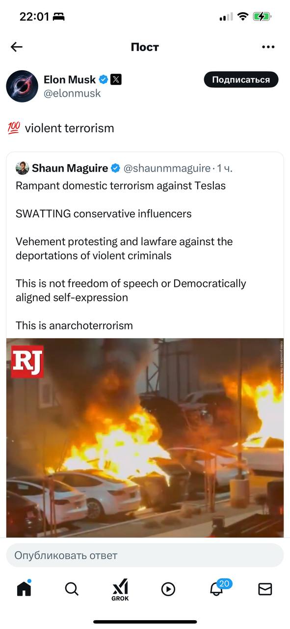 Маск заявил о терроризме. В Лас-Вегасе подожгли сервисный центр автомобилей Tesla. Видео