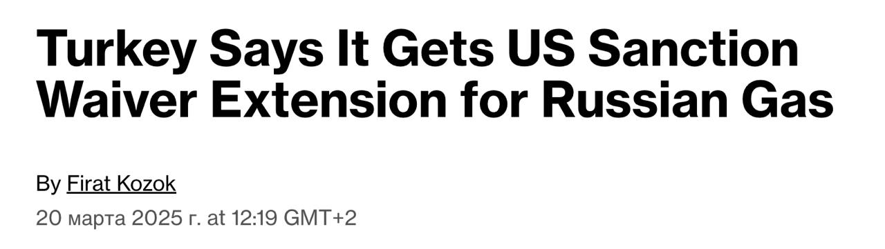 "По словам турецкого чиновника, непосредственно осведомленного об этом вопросе, США согласились продлить срок действия отмены санкций, что позволит Турции продолжать закупать российский природный газ до мая", - говорится в статье.