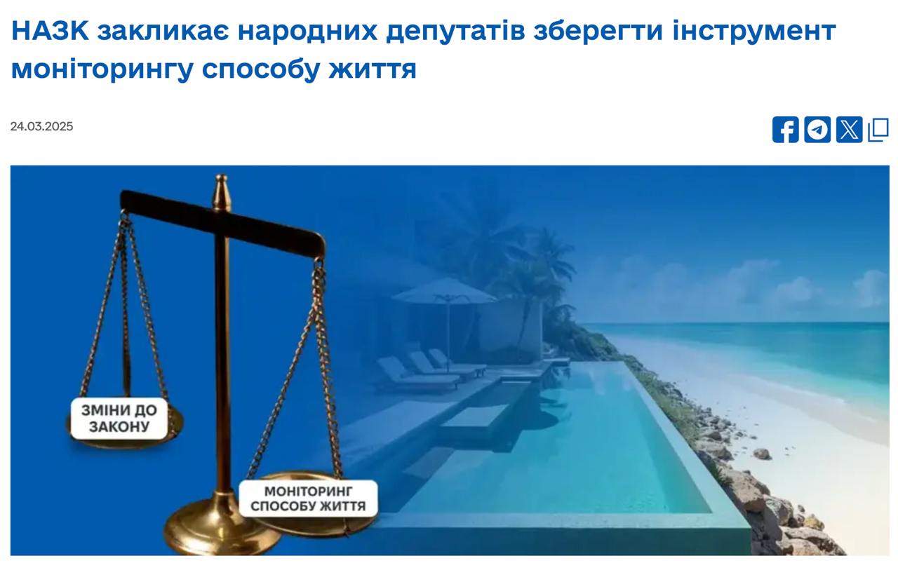 В свою очередь НАПК заявляет, что предложенные изменения "могут уничтожить инструмент мониторинга образа жизни чиновников", и призывает Раду не принимать законопроект.