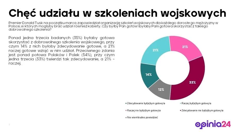 Как сказано в статье RMF FM, война в Украине вызвала в Польше дискуссии о военной подготовке населения. В середине марта премьер-министр Дональд Туск заявил, что в 2027 году Польша сможет провести военную подготовку 100 000 солдат и волонтеров. План обучения должен быть готов уже к концу марта.
