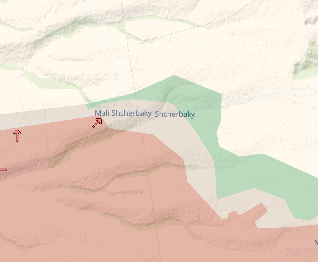 Кроме того россияне продвинулись в районе Гуево, которое, судя по начертанию карты, хотят обойти с запада.