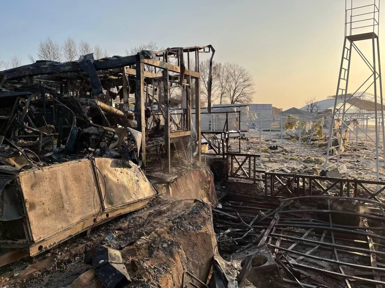 "Массированный удар нанес масштабные разрушения и пожары. Горели гостинично-ресторанный комплекс, 11 частных домов, гаражи, СТО. Пострадали многоэтажки и 21 автомобиль", - сообщили в ГСЧС.