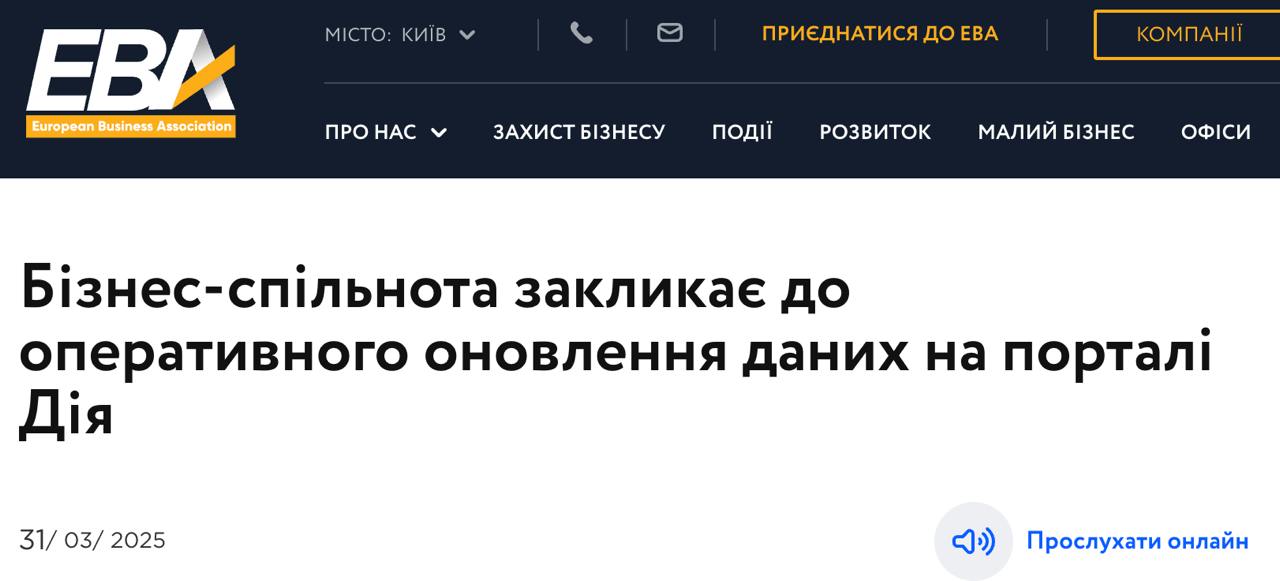 "Отсутствие технической возможности корректно отразить общее количество военнообязанных оказывает непосредственное влияние на размер квоты – количество работников, которых компании могут забронировать. Это особенно критично для предприятий, где мобилизованы уже более 30% военнообязанных. Такая ситуация может оказывать негативное влияние на стабильность работы бизнеса и эффективность производственных процессов", - сообщают в EБA.