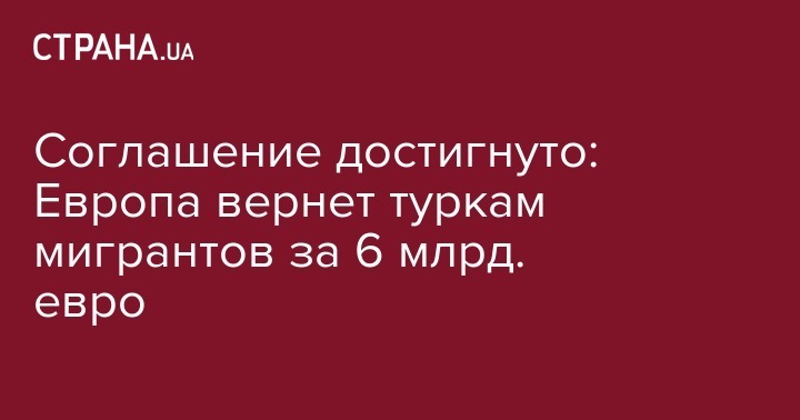 Соглашение достигнуто: Европа вернет туркам мигрантов за 6 млрд. евро