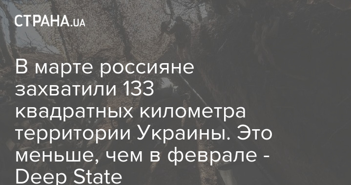 За март российские войска захватили 133 квадратных километра украинской территории, что на 59 квадратных километров меньше, чем было в феврале.