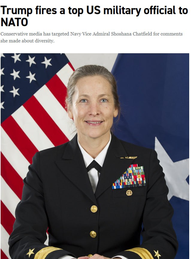 Президент США Дональд Трамп уволил вице-адмирала Военно-морских сил США Шошану Чатфилд.