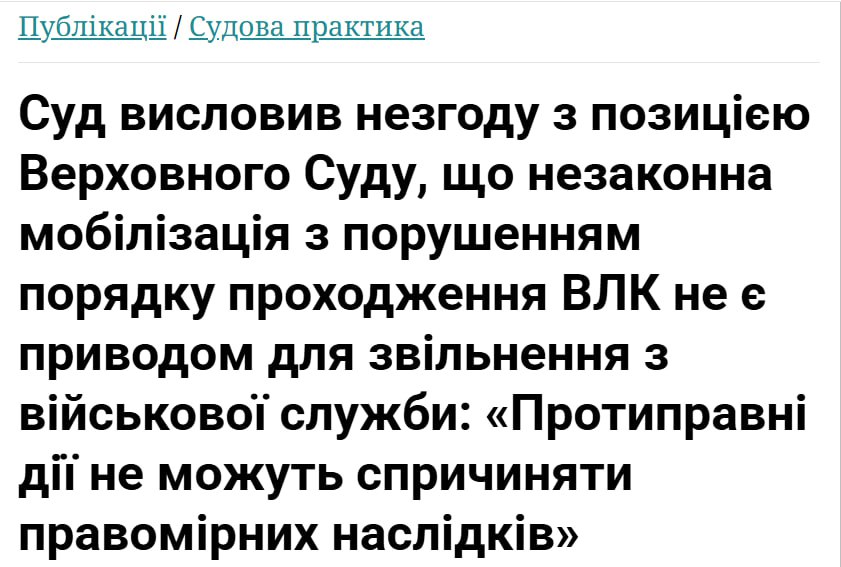 Днепропетровский окружной административный суд выразил несогласие с позицией Верховного суда, согласно которой незаконная мобилизация с нарушением порядка прохождения военной медкомиссии не является поводом для увольнения с военной службы.