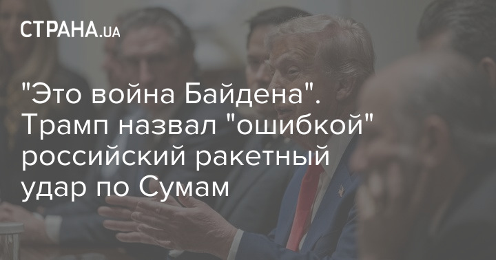 Президент США Дональд Трамп прокомментировал ракетный удар по Сумам и назвал его "ошибкой", но добавил, что "эта война - война  Байдена".