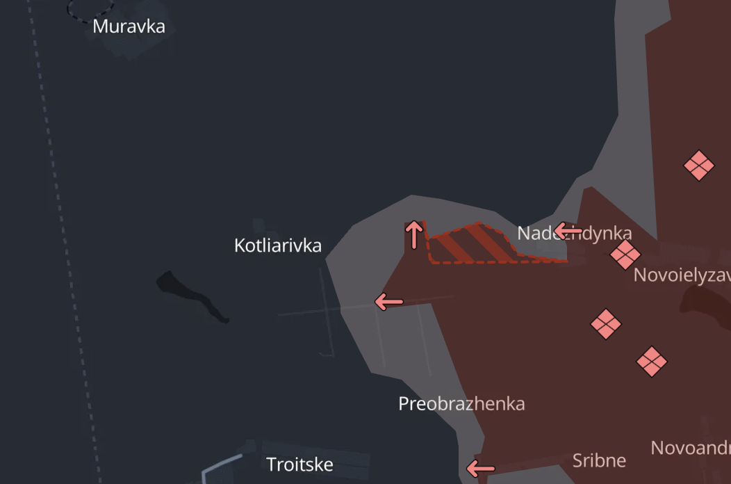 Российская армия продвинулась на Покровском направлении возле Надеждовки - на западном крае выступа южнее Покровска, у границ Днепропетровской области.